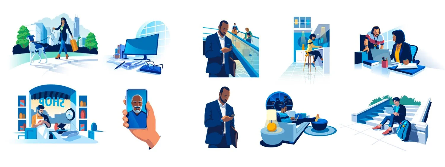 ““Illustration provided a solution that could more accurately and completely play into the AT&T color palette. Freeing themselves from the constraints of photography, the group gained agency and control – particularly when it came to the meticulous specifics of certain visuals.” ”